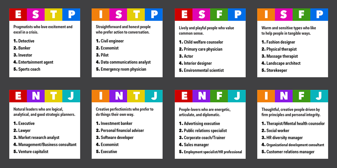 Many people use the Myers & Briggs MBTI® personality test, or something similar, to determine their own personality type and that of each member of their team. There are 16 different MBTI types and as we all know, different personality types work together in different ways. 16 Personalities allows you to take a test and determine your type. We all fall into a combination of these 4 areas: